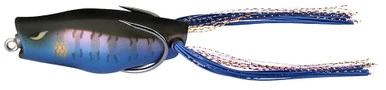 A deadly weapon for anglers looking to experience jaw-dropping topwater explosions, the 13 Fishing Trash Panda Poppin? Frog is designed to be fished through the nastiest of stuff and get bit. Built upon a timeless hollow body frog design, 13 Fishing?s offering features multi-material legs that add a bit of additional flash and flair to help your presentation stand out. On the business end, the Trash Panda Poppin? Frog features shrink tubing where the custom 4/0 hook enters the body to all but eliminate water intrusion and sinking. A ?blow hole? on top of the Trash Panda ensures complete body collapse when a fish bites which exposes more of the hook and maximizes hook-up rates. Once hooked, the heavy-duty hook allows the angler to lock down their drag and pull fish from the thickest of cover with ease.