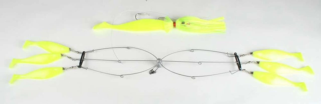 The Blue Water Candy 15in Umbrella Parachute is a 15in weighted umbrella with 4 6? shad teasers and a 4 oz. parachute trailing behind. Made for saltwater fishing.