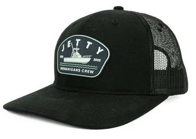 The Jetty Shenanigans Trucker Hat is a trucker hat made for any angler looking to sport the Jetty look. Made with 100% Cotton Canvas Front w/ a mesh back and features a Jetty woven patch custom label on the front.