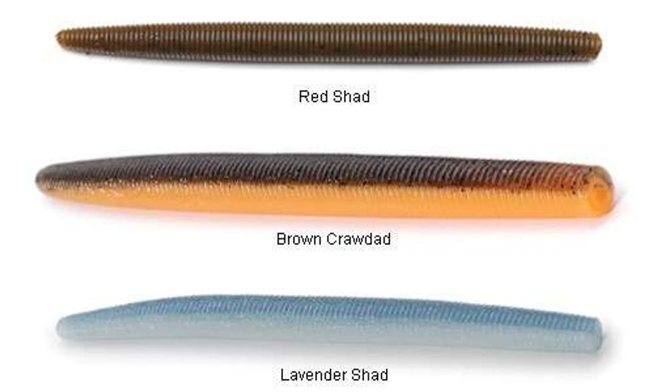 | Color | Junebug, Red Shad, Lavender Shad, Green Pumpkin with Black Flake, Watermelon Black Flake/Silver Belly, Laminated Smoke Shad, Watermelon Black Red Flake, Watermelon Black, Black with Blue Flake, Watermelon/Purple Copper Flake, Baby Brim, Green Pumpkin Black and Red Flake, Watermelon Red Flake, Green Pumpkin Purple Copper Flake |