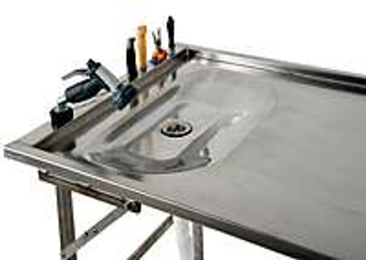 The Organized Fishing SST-001SK Gray Stainless Steel Fillet Table provides ample space for cleaning fish or game, as well as being a great all-around workstation. The stamped in sink, folding faucet, and additional hose and nozzle add lots of flexibility.