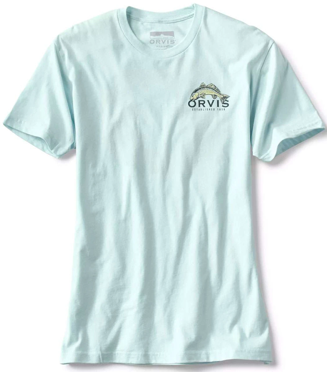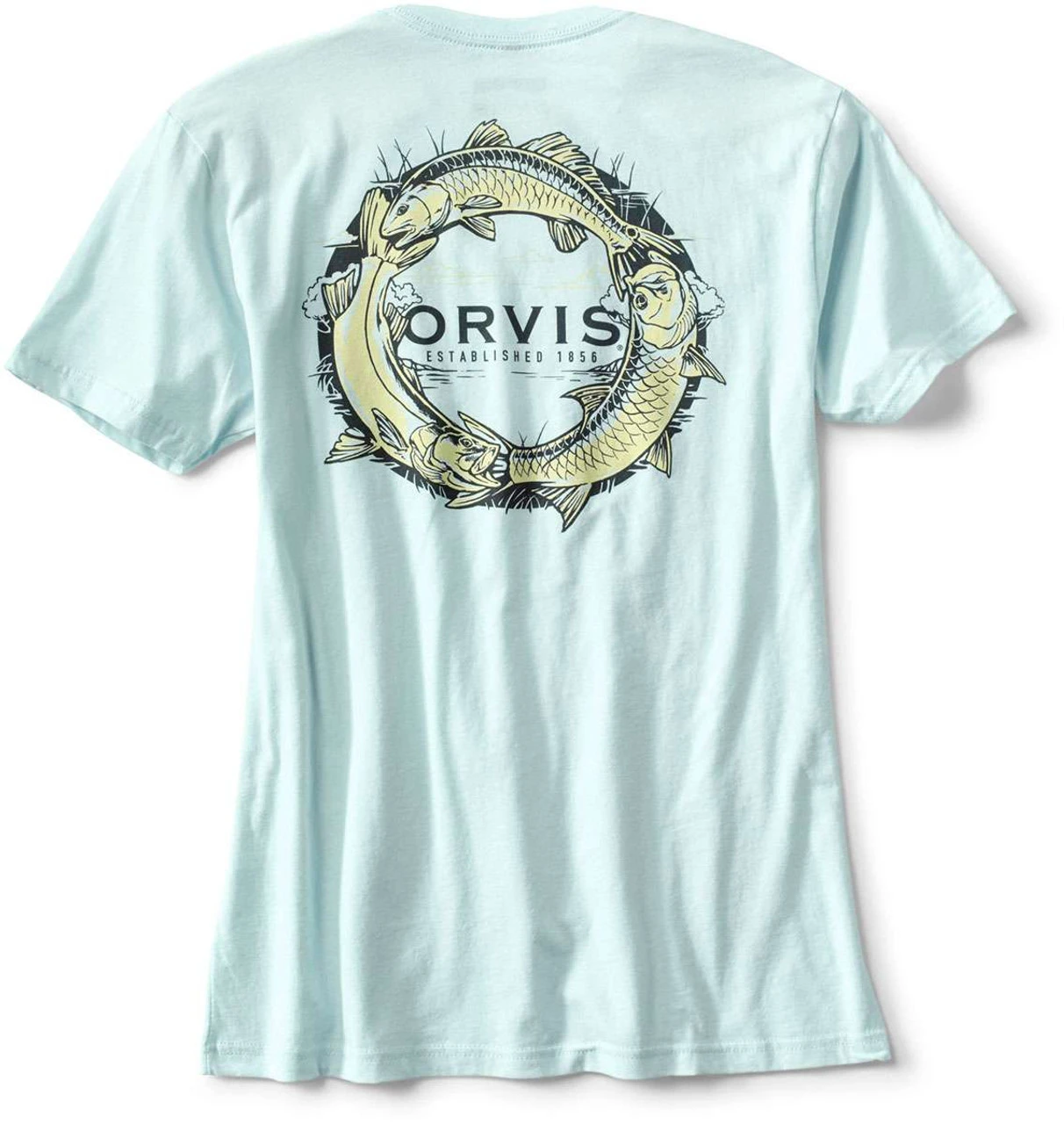 The Orvis Saltwater Circle T-Shirt is a classic logo tee for easygoing wear on or off the water Soft pure cotton breathes for all-day comfort. This shirt is made of breathable and soft cotton-rich blend for all-day comfort. Saltwater Circle graphic on the back and small graphic on front left chest.
