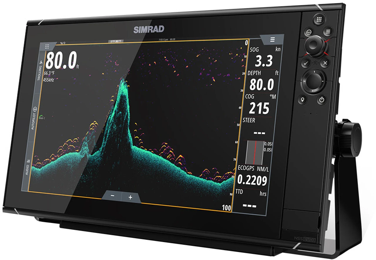 Simrad NSO evo3 displays enable sonar, radar, charting, and more, offering the flexibility to create a system perfectly tailored to your boat. Cruise confidently offshore with a powerful chartplotter navigation system, featuring a big-screen view that rivals paper charts. Free your hands from the wheel by adding autopilot, and choose from a range of sonar and radar options to offer advanced fish-finding technology or safer cruising.