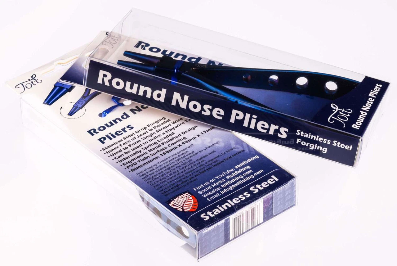 The Toit Fishing Round Nose Pliers are designed so the inner edges of the jaws are touching when the tool is in a closed position. This will allow various wire sizes to be held securely while forming into position. These pliers are made from a Stainless Steel drop forging and can be used alongside the Haywire Twist Tool. They are the perfect tool to use for all your knot tying applications. The holes in the handles also provide a good way to hold a single or treble hook while cinching your knot up.